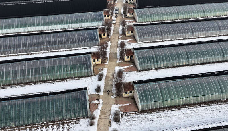 在天津市西青区辛口镇水高庄村拍摄的修缮后的大棚一景(12月12日摄,无人机照片)。新华社记者 李然 摄