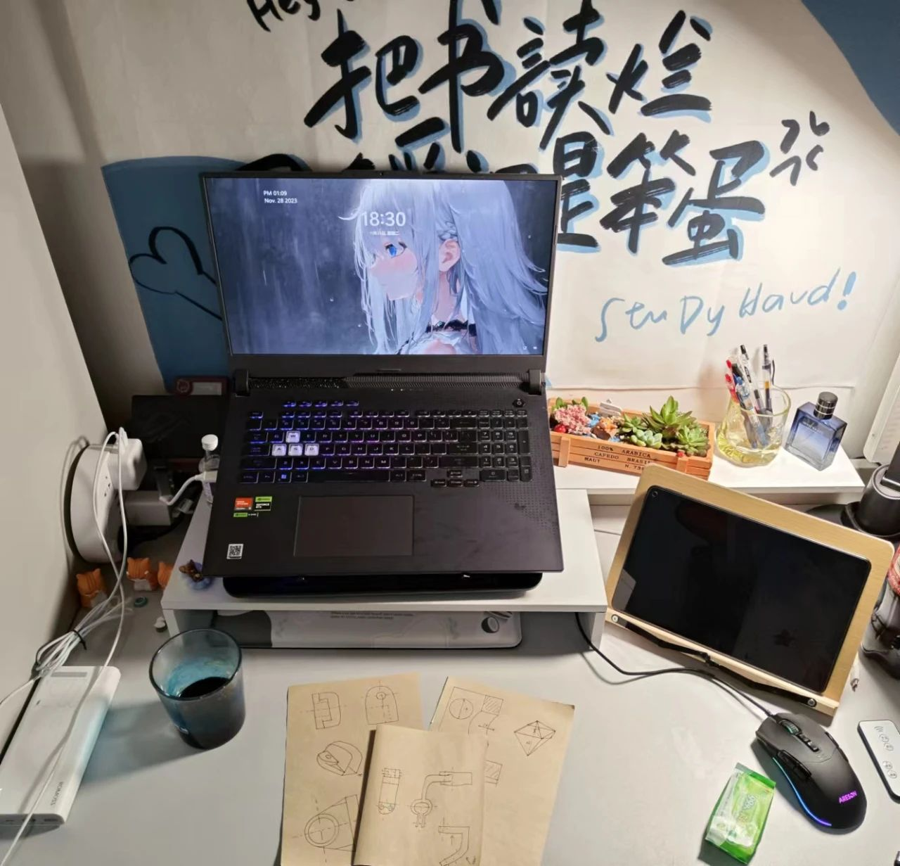而书桌一隅