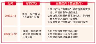 一记重拳,直击传播虚假信息、展示不当行为、传播错误观念等乱象:从3月开始持续两个月整治“自媒体”,到12月集中整治短视频领域价值导向失范和不良内容多发等问题,中央网信办一年来连续开展数次“清朗”系列专项行动,聚焦短视频突出问题从严整治;