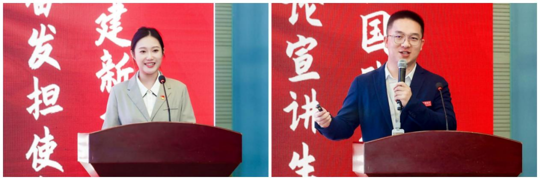 第五届研究生党支部书记联席会秘书长潘彦宇、第三届研究生宣讲团团长龙光泽进行“红旌工程”第三期研究生党建成果汇报。潘彦宇从“严密组织体系 健强骨干队伍”“传承红色基因 赋能党建品牌”“走深党员教育 汲取奋进力量”“选树先进典型 凝聚党建合力”等四个方面作2022-2023学年研究生党支部书记联席会工作报告。龙光泽从加强课程筹备、凝练主题清单、深化下沉宣讲、促进交流互鉴、服务国家战略、共话青年担当六个方面汇报了2022-2023学年研究生宣讲团的工作开展情况。