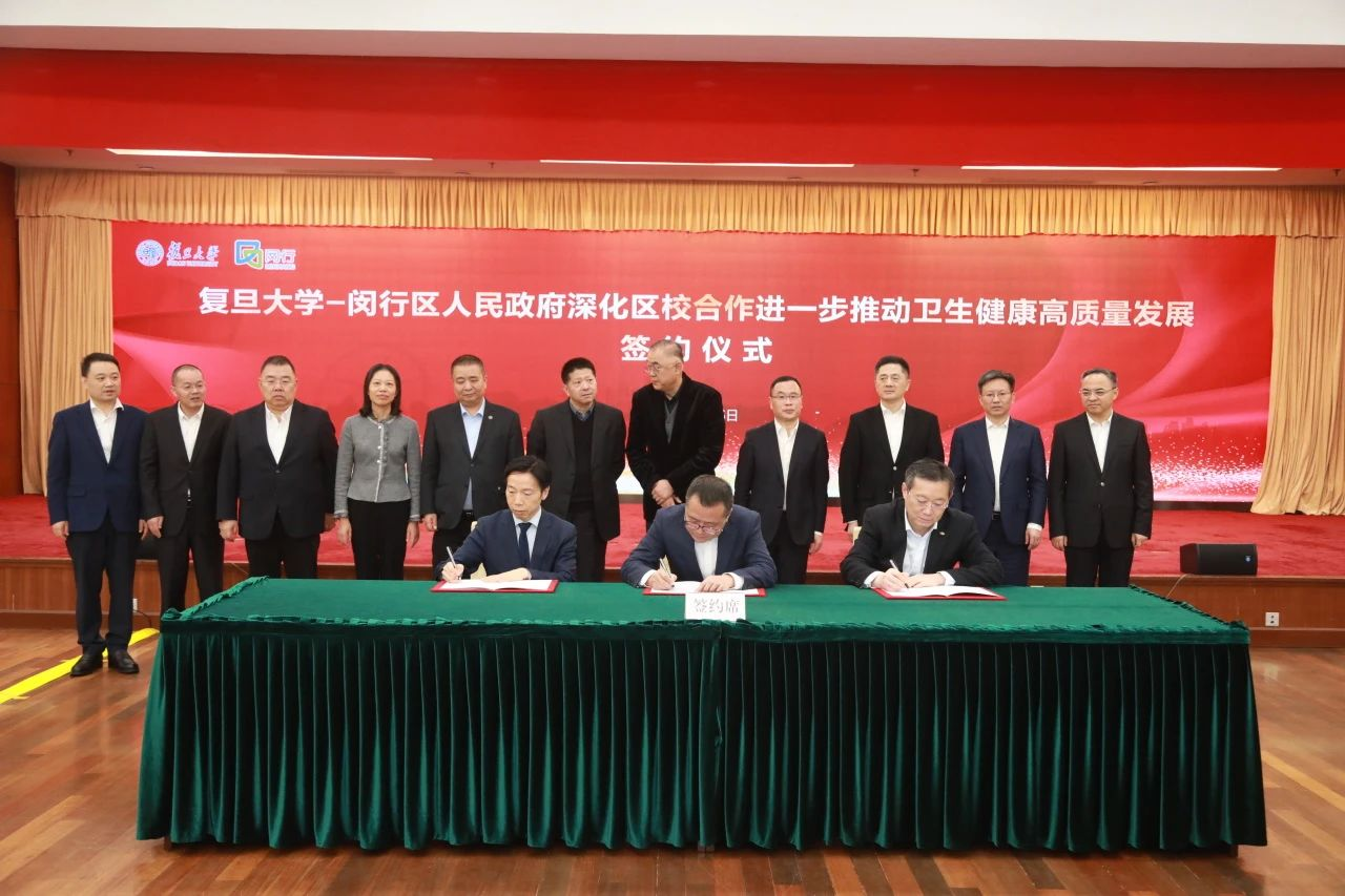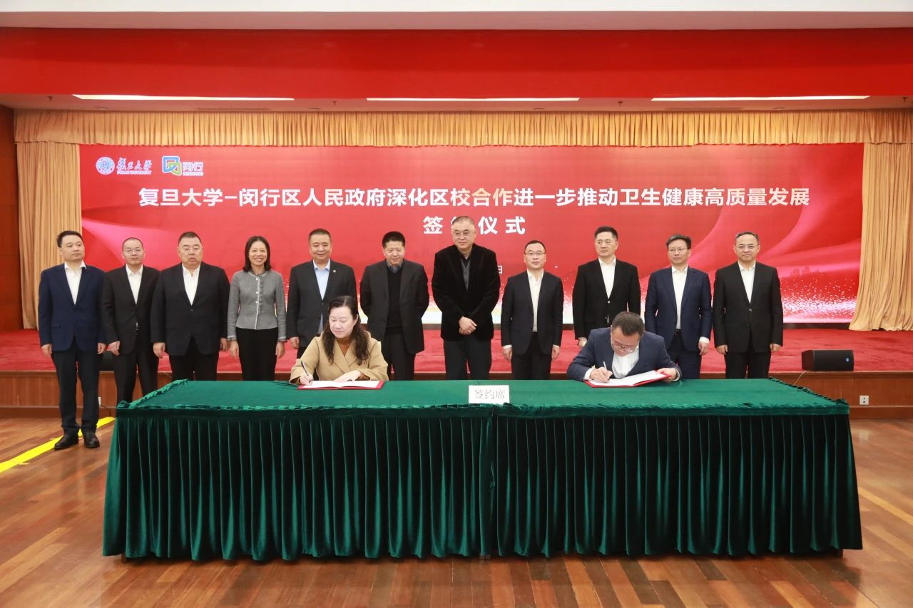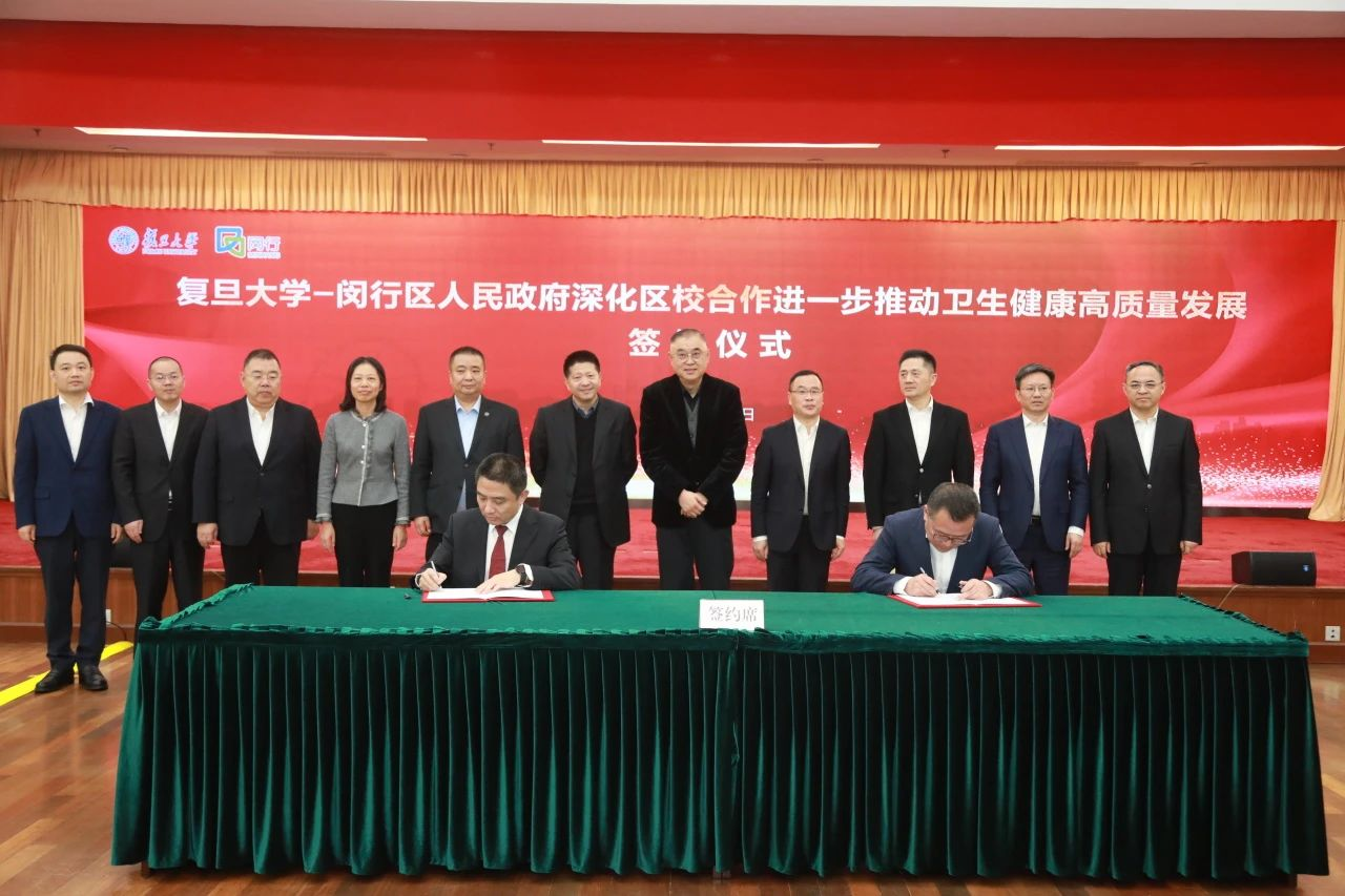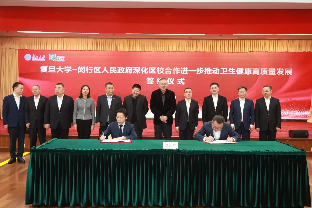 在闵行区-复旦大学进一步深化区校合作推动卫生健康高质量发展签约仪式上,双方签署“国家儿童医学中心产学研科技中心合作框架协议”、“上海市老年疾病研究中心合作框架协议”、“合作筹建眼耳鼻喉科领域国家级医学中心及青少年近视防控中心框架协议”和“眼耳鼻喉科产业成果转化合作框架协议”等4份医疗健康合作协议。