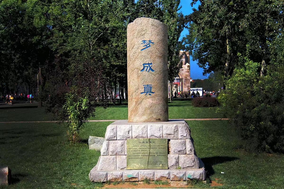“梦成真”纪念石傲雪挺立
