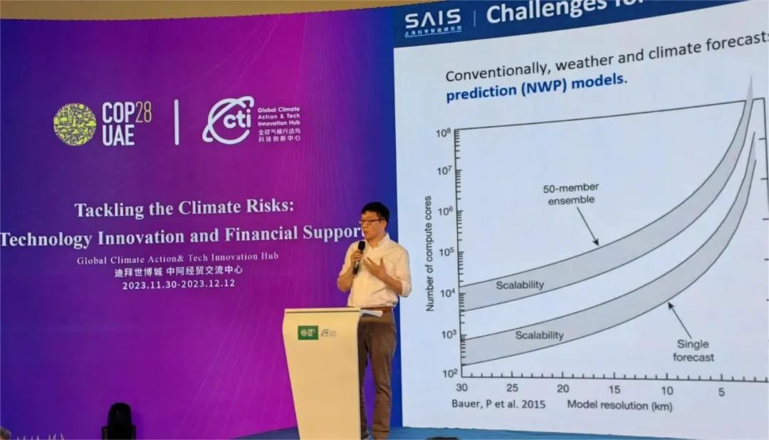 12月8日,上海科学智能研究院院长、复旦大学浩清教授漆远在迪拜COP28中国馆《气候变化风险应对:技术创新与金融支持》论坛上介绍了“伏羲”次季节大模型。
