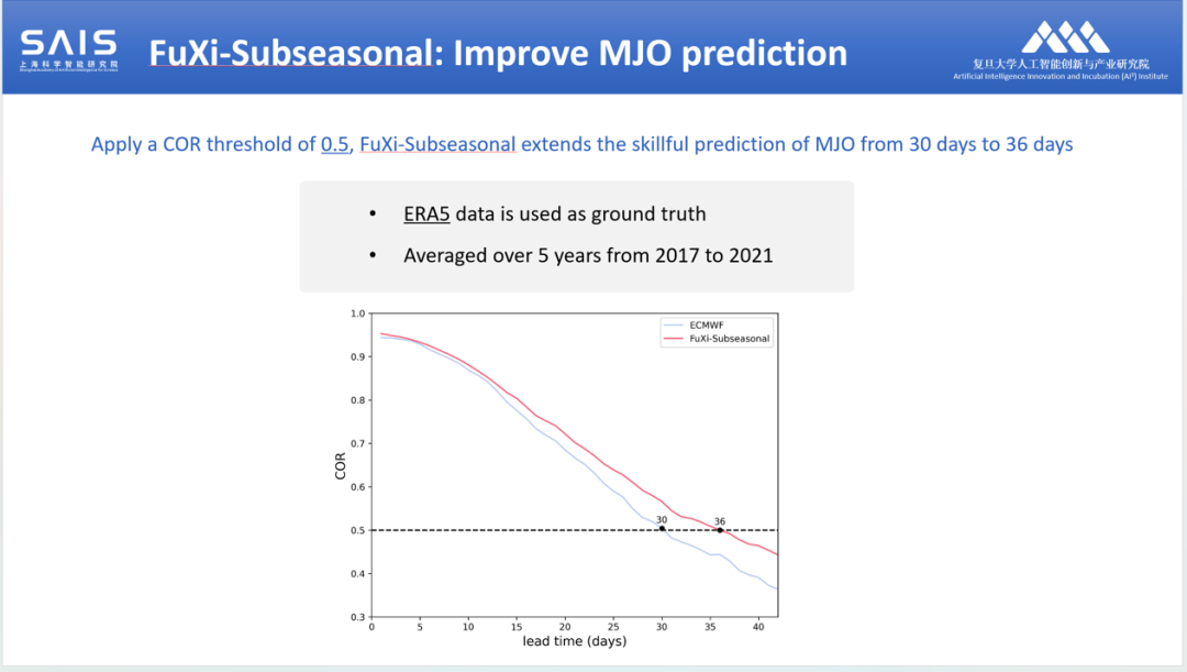 特别值得一提的是,“伏羲”次季节大模型显著增强了预测马登-朱利安振荡(MJO)的能力,将预测MJO的时间从30天延长到了36天,这一结果超过公认权威的ECMWF S2S的预测能力。