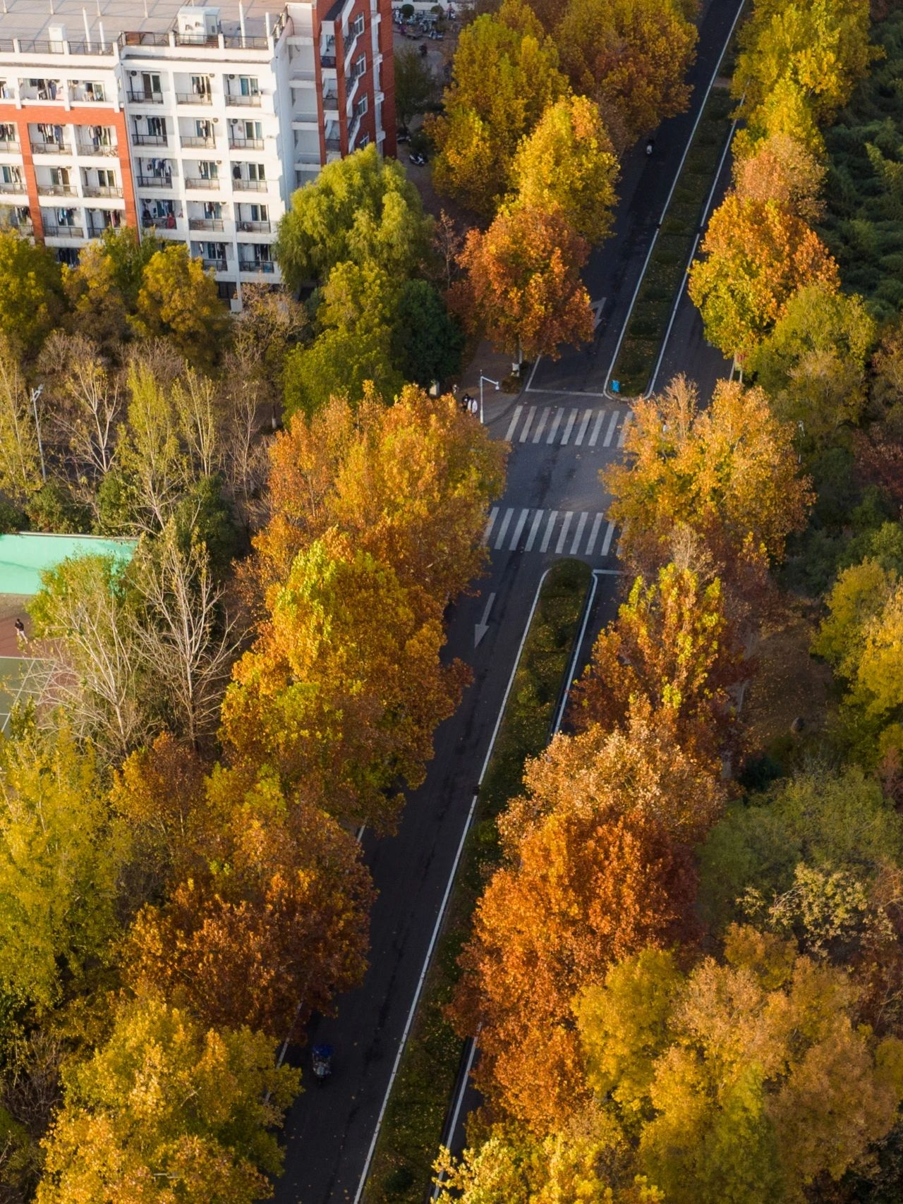 走在校园的道路上,感受秋天