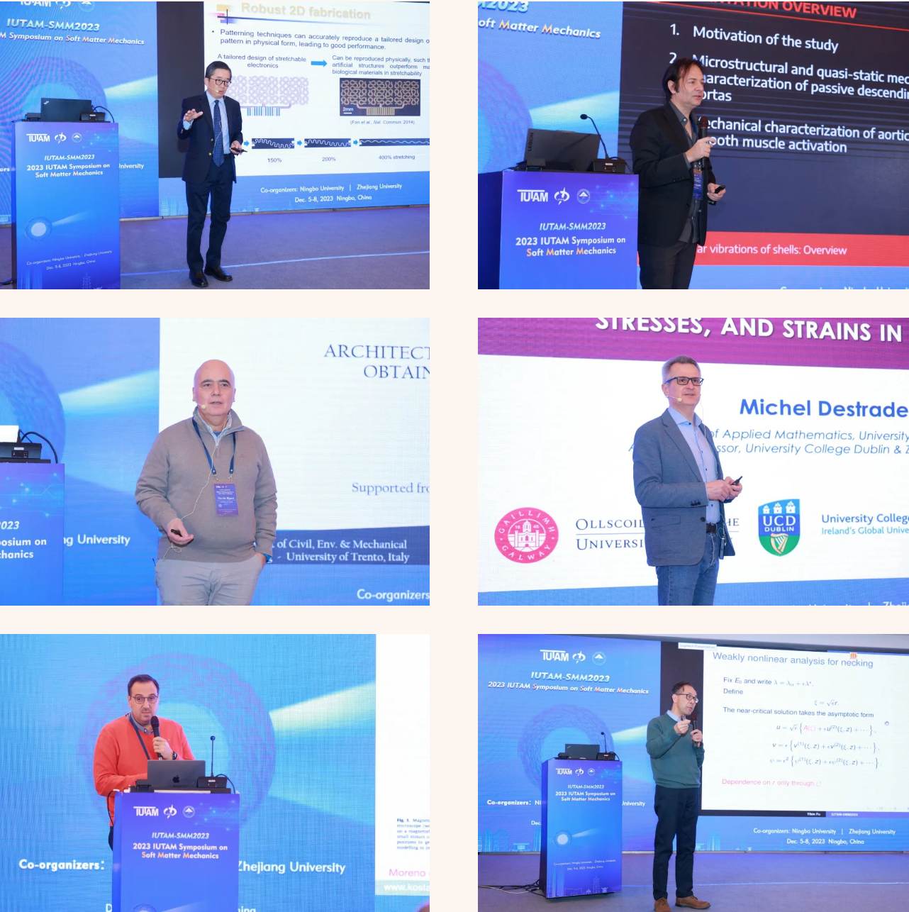 出席开幕式的特邀嘉宾包括IUTAM代表高华健院士、加拿大麦吉尔大学Marco Amabili教授、爱尔兰高威大学Michel Destrade教授、法国高等师范学院Martine Ben Amar教授、意大利特伦托大学Davide Bigoni教授、英国基尔大学Yibin Fu教授、清华大学冯西桥教授、清华大学冯雪教授、浙江大学曲绍兴教授、北京理工大学陈少华教授、西安交通大学刘子顺教授、美国科罗拉多大学博尔德分校Jianliang Xiao教授、巴黎综合理工大学Kostat Danas教授、南方科技大学洪伟教授、浙江大学季葆华教授、浙江大学钱劲教授、浙江大学宋吉舟教授、清华大学李博教授和宁波大学机械工程与力学学院领导、力学学科教师等。