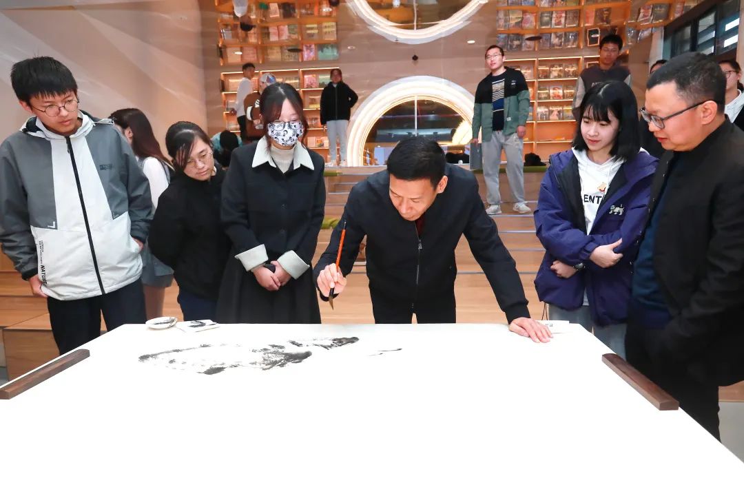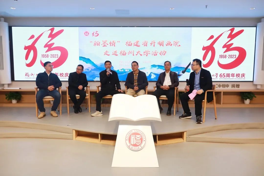 开幕式后还举办了文化与艺术沙龙活动,沈斗平、邓春晖、李大林、魏福顺、张雨等书画家与福大师生展开交流探讨。此外,在书画创作互动环节,福建省开明画院画师与福大师生共绘“翰墨飘香”图,现场师生通过与画师互动,深刻感受了传统书画艺术之美。