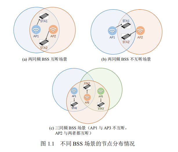 对此,团队展开了在无线局域网多个同频基本服务集场景下评估系统吞吐性能的研究。首先分析不同组网条件下的信道状态转换和状态时长,然后利用 Bianchi 模型对 MAC 协议下的多种复杂 BSS 通讯场景数据传输中的随机退避过程进行建模,基于 Markov chain 模型求解节点在每个虚拟时隙发送数据帧的概率和发生碰撞的条件概率。最后基于概率分布构建系统吞吐解算模型,实现系统性能的评估,同时编写仿真器验证模型精确度,得到信道最大利用率和系统性能等指标参数。他们的研究成果可以用于处理更复杂的网络部署问题,从而进一步推动网络环境的发展。