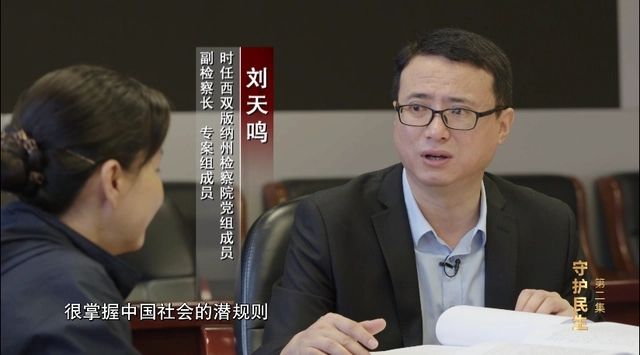 在上述专题片中,时任西双版纳州检察院党组成员、副检察长的刘天鸣以专案组成员的身份亮相。
