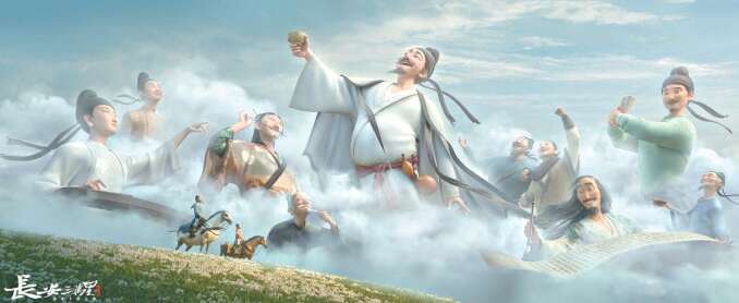 动画电影《长安三万里》以高适的诗歌“莫愁前路无知己,天下谁人不识君”作为叙事的点题方向,将视觉化的盛唐诗歌和诗人呈现给当下人,让观众在观影的三个小时里不但享受了物理空间的“远方”,还共享了精神上的“诗”空间,他们在高适、李白二人“失意—得意”的循环往复和自由自在之间,体会生命的情动、权力意志以及终极自由。这部动画电影不但燃起了儿童在影院里背诵唐诗的冲动与参与热情,也勾起了成人情感世界里的感怀与悸动,随着高、李二人,进行全家狂欢、全影院空间狂欢,暂时从常规的、谨小慎微的“第一生活”进入到狂欢的、自由的“第二生活”,向人的精神性乌托邦之路行进。