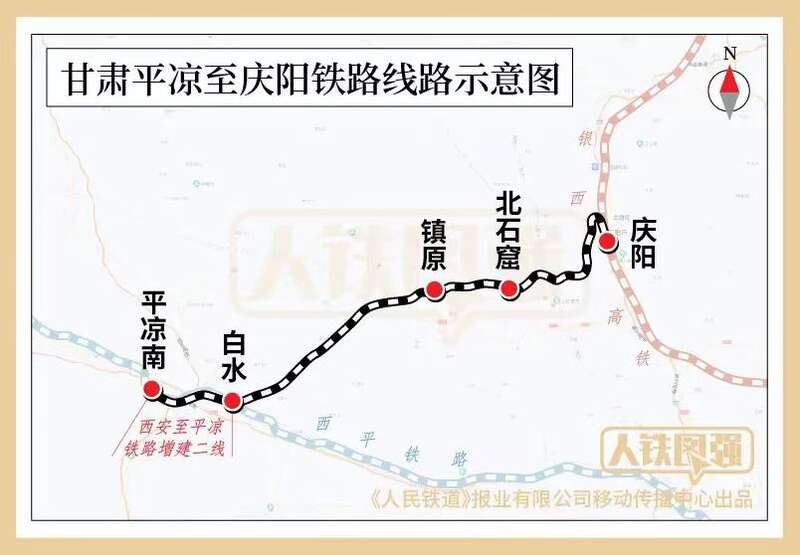 平庆铁路位于甘肃东部地区,线路全长约92公里,为国家Ⅰ级双线客货共线电气化铁路,自平凉市崆峒区平凉南站引出,经平凉市崆峒区、庆阳市镇原县、庆阳市西峰区,接入银川至西安高铁庆阳站,其中平凉南至白水段沿西安至平凉铁路增建二线,长约12公里,设计时速120公里;白水至庆阳段为新建双线铁路,长约80公里,设计时速160公里。平庆铁路共设平凉南、白水、镇原、北石窟、庆阳5座车站,其中平凉南、庆阳为既有车站,其他为新建车站,建设工期4.5年。