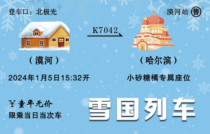 1月5日15时左右,K7042次旅客列车即将从漠河站发车返回哈尔滨。