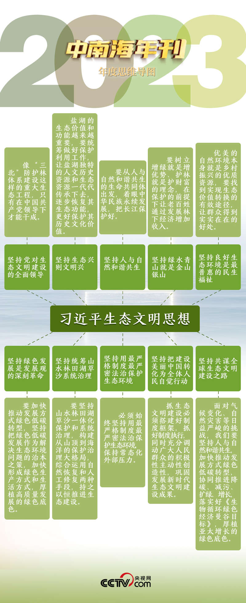 2023年,一场全方位、深层次的绿色变革渲染着中国高质量发展的底色。央视网运用智能大数据分析总书记这一年推动生态文明建设的深邃思考与战略擘画,与您一起领略中华大地上山水相映、蓝绿交织的绿色发展图景。
