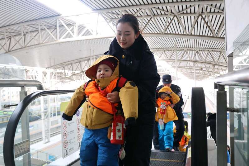 吉林站工作人员领“小砂糖橘”们出站。吉林站供图