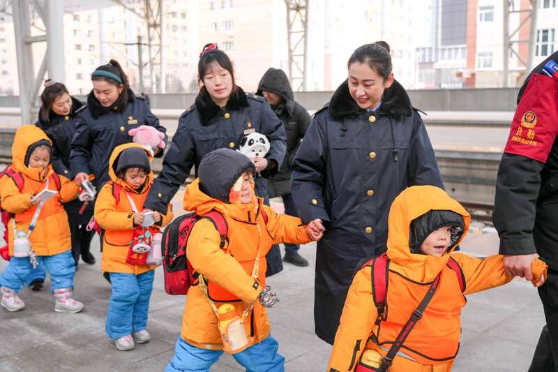 “小砂糖橘”们一下火车,车站工作人员抱他们下车、帮忙拿行李,并将具有吉林特色的文创产品和玩偶送给了孩子们。“我喜欢这个礼物,像小雪花一样,我可以把小雪花拿回家给妈妈看。”即将6岁的“小砂糖橘”璐璐把礼物放进了口袋里。