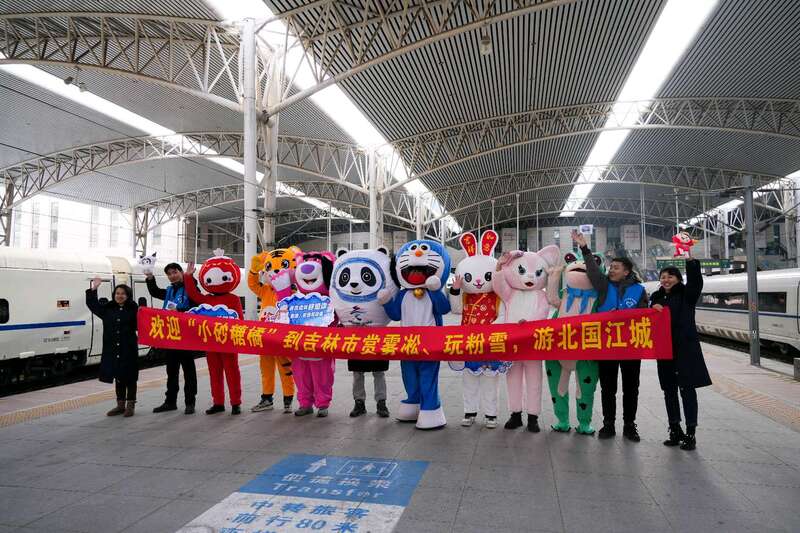 为了让前来研学的老师和孩子们感受到吉林人民的热情,吉林站组织青年志愿者和车站职工20多人,穿上玩偶服饰,在站台迎接。