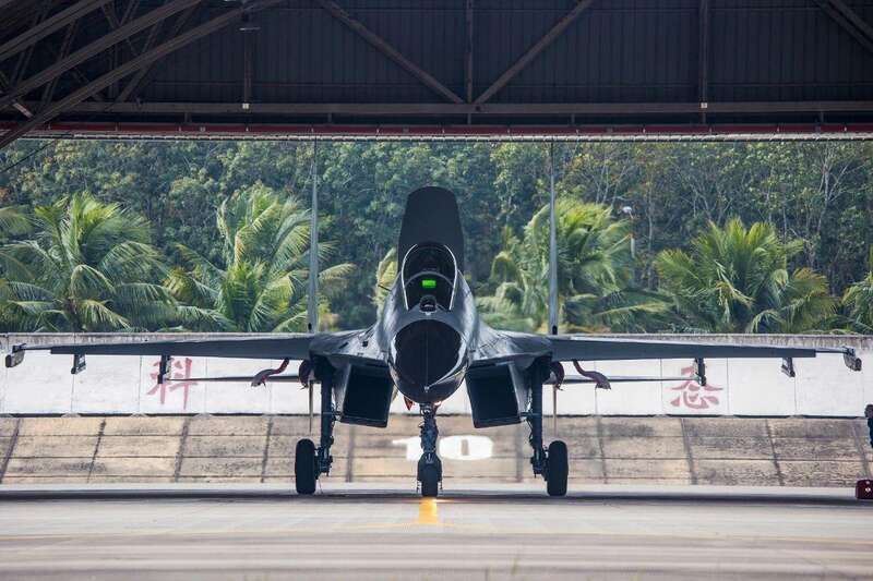 战机滑出机库、推杆升空