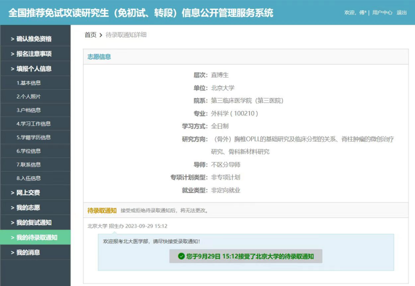 最终成功直博北京大学