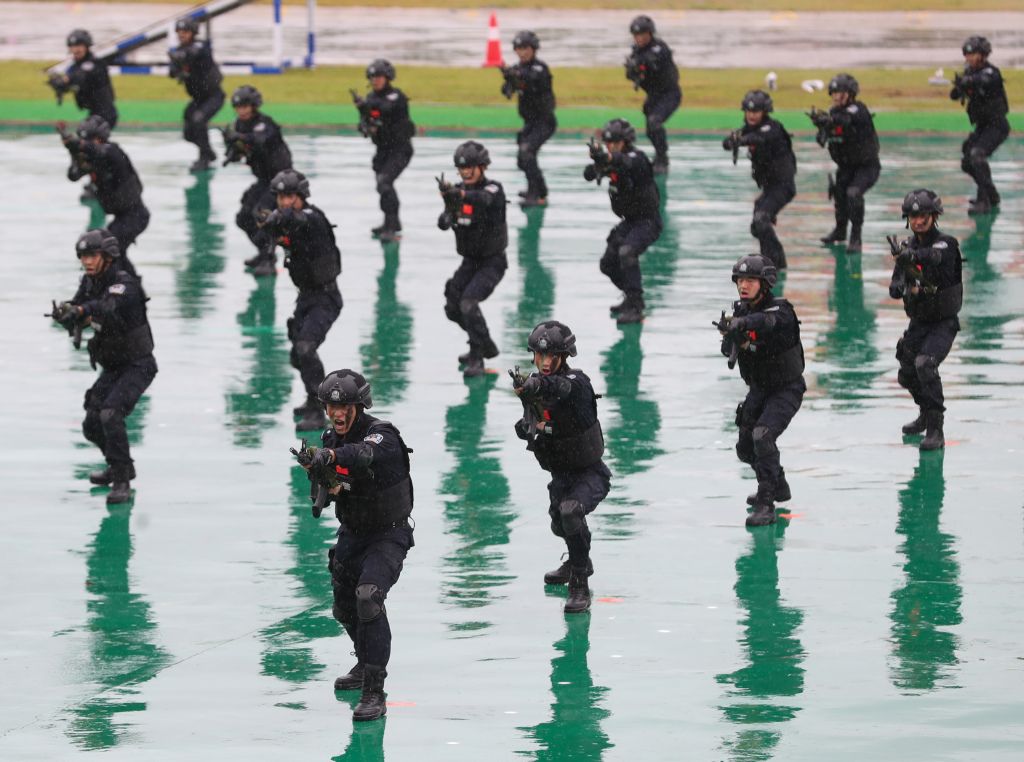 2019年3月1日,海口,2019年全省特巡警业务交流研讨会暨“冬训”练兵成果汇报演练在武警海南总队东山训练基地举行。