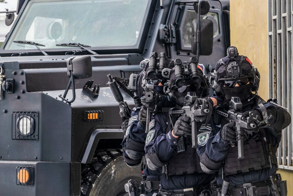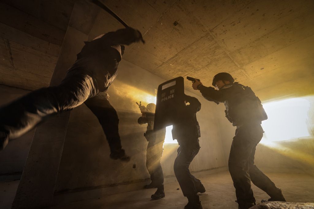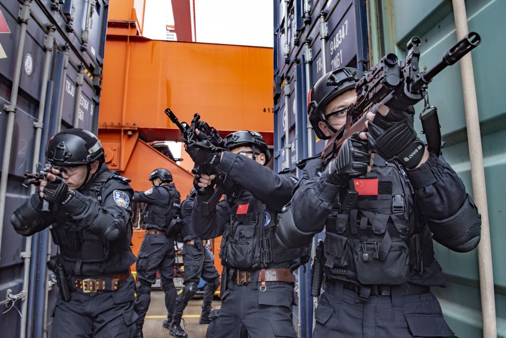 2023年11月25日,内蒙古呼伦贝尔,突击队员进行封控抓捕演练。