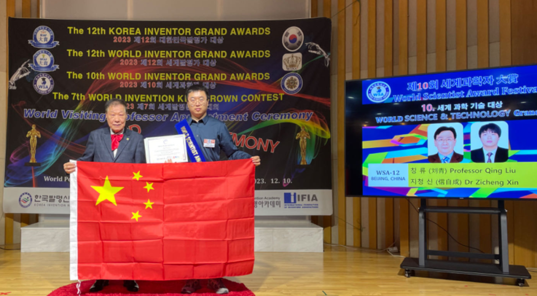 该活动由KINEWS主办,得到了KINEWS联合组委会、亚洲发明协会、亚洲发明创造协会、国际知识产权网络论坛的共同支持。 作为世界上最有影响力的为全球研究人员提供科学发现与技术创新评价的组织之一,KINEWS的宗旨是认识发明的重要性,评估研究人员取得的创新成果,鼓励不同领域取得杰出成就的科学家和发明家,并保障其权益 , KINEWS在国际上享有盛誉。实验室刘青教授和信自成博士后收到韩国发明学院 (Korea Invention Academy, KIA)院长、韩国发明新闻 (Korea Invention News, KINEWS)主席Hong Soungmo教授的邀请,参加了国际发明家协会联合会暨KINEWS共同举办的“第十届世界科学家大奖 (World Scientist Grand Awards, WSA)”和“第九届世界发明创新大赛 (World Invention Innovation Contest, WIC)”,并荣获2023年度“世界科学家大奖-金奖与科学技术奖”和“世界发明创新大赛-金奖”!