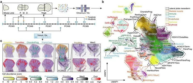 近年来发展的单细胞技术使得在人类中直接研究肢体发育过程中的细胞命运决定和空间位置形成成为可能。