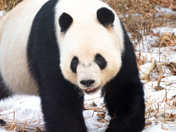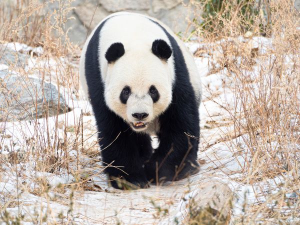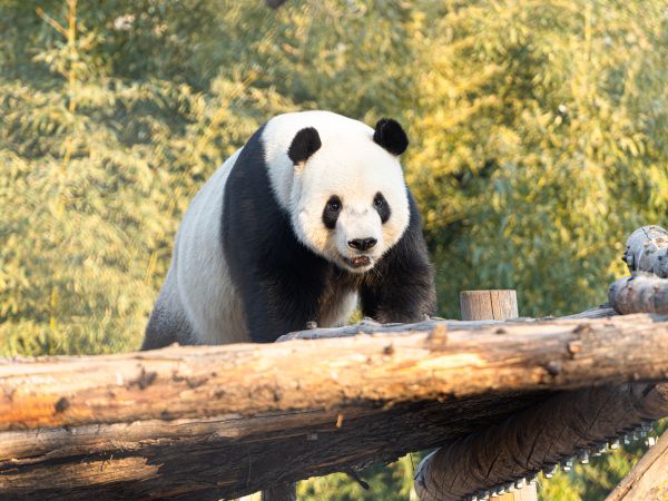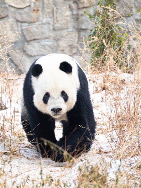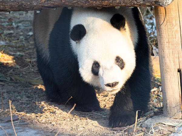 2024年1月8日下午,北京动物园亚运熊猫馆外场,大熊猫萌二在外场玩耍。