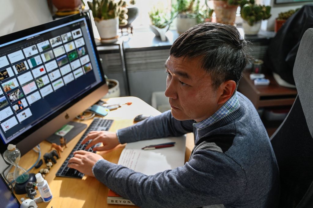 2024年1月10日,北京,中国科学院古脊椎动物与古人类研究所学术会议上,中国学者、联合主任张颖奇在办公室完成“巨猿灭绝”科学项目的报告后工作。