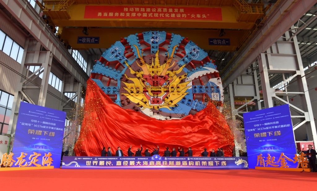2024年1月10日,长沙,由中铁十一局和铁建重工联合打造的超大直径盾构机“定海号”顺利下线。