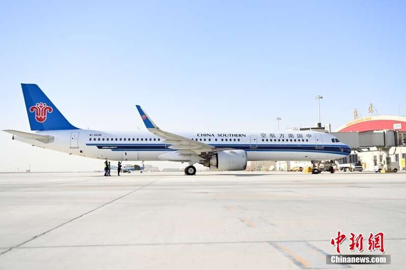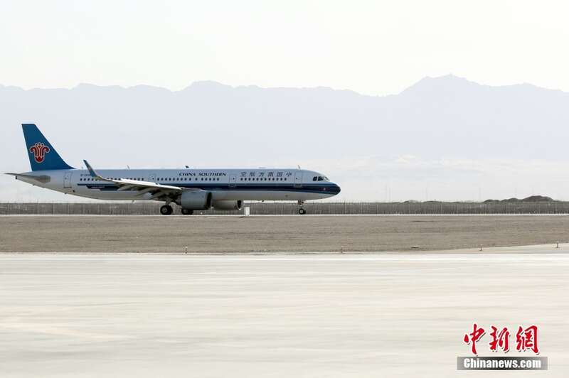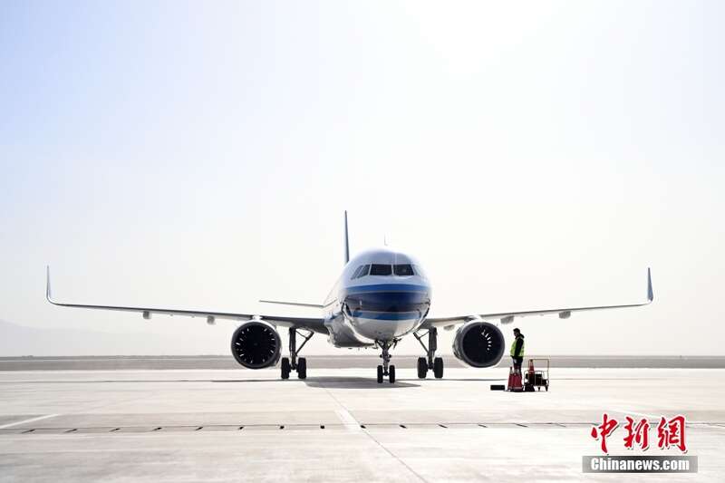 1月12日,2024年首批韩国入境旅客落地敦煌莫高国际机场。这是敦煌首次开通韩国首尔航线。图为韩国首尔至敦煌的旅游包机顺利抵达敦煌莫高国际机场。