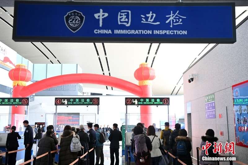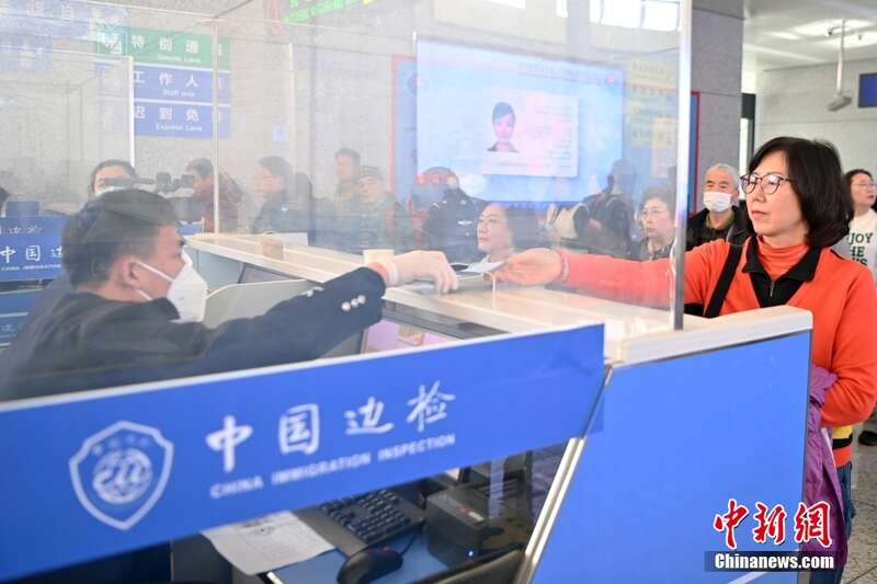 韩国入境旅客在敦煌莫高国际机场办理入境边检手续。