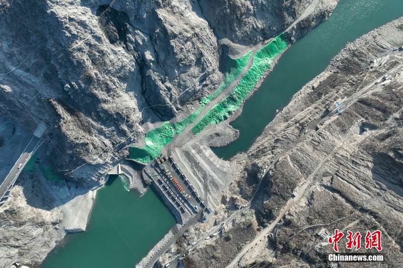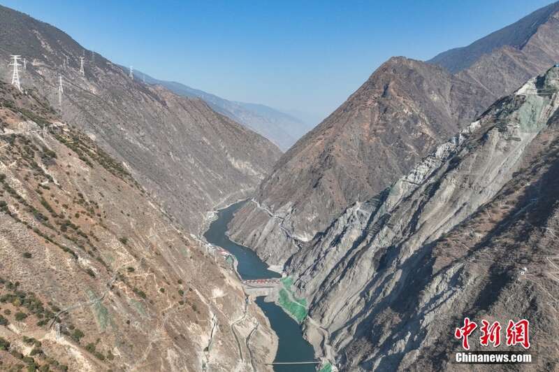 1月12日,四川木里,俯瞰雅砻江卡拉水电站主体工程建设现场。当日,雅砻江卡拉水电站实现大江截流,转入主体工程建设。卡拉水电站是雅砻江中游“一库七级”开发的第7级水电站。电站大坝高123米,装机容量102万千瓦,计划2029年投产发电。