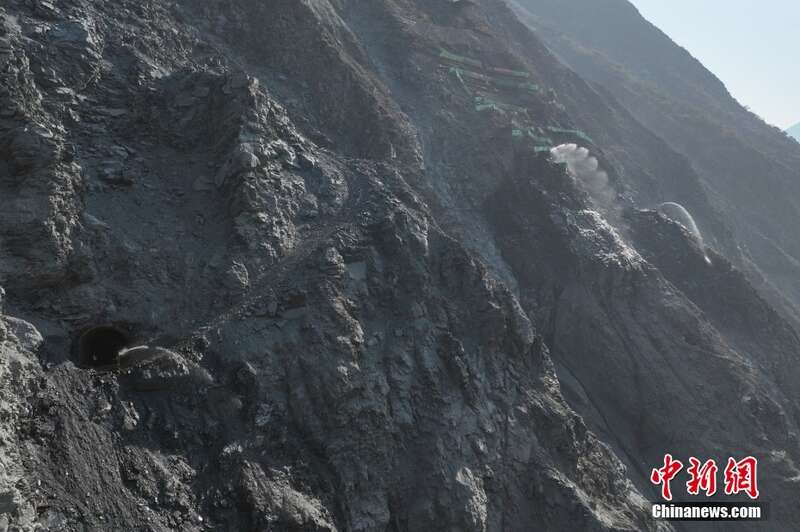 深山峡谷中的雅砻江卡拉水电站工程建设现场。