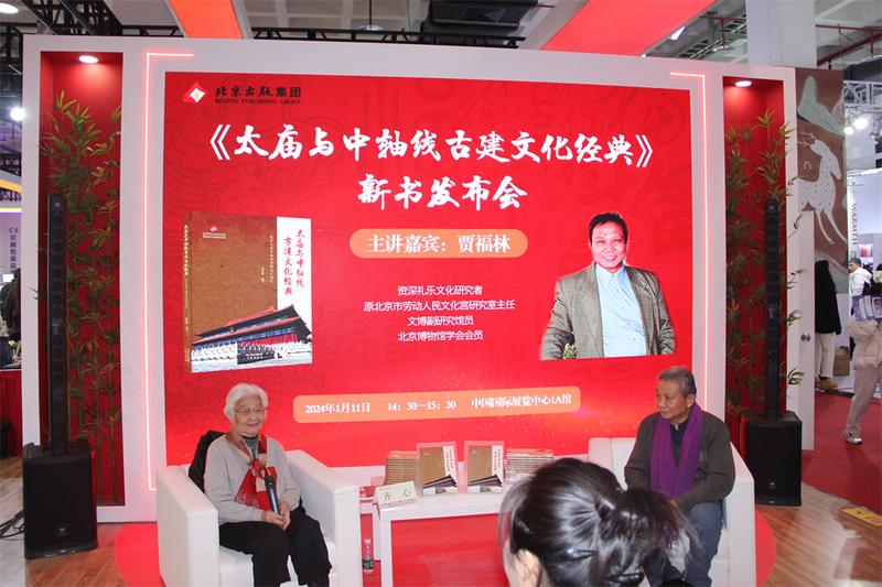 中国青年报客户端讯(中青报·中青网记者 蒋肖斌)1月11日,《太庙与中轴线古建文化经典》新书发布会,在第36届北京图书订货会北京出版集团展位举办。本书作者、礼乐文化研究者贾福林,作了题为“助力申遗:太庙与中轴线古建文化经典”的文化讲座。
