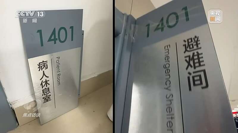 记者注意到一个细节,一旁“病人休息室”的牌子和避难间的房间号都是1401。