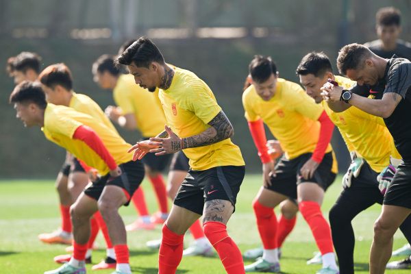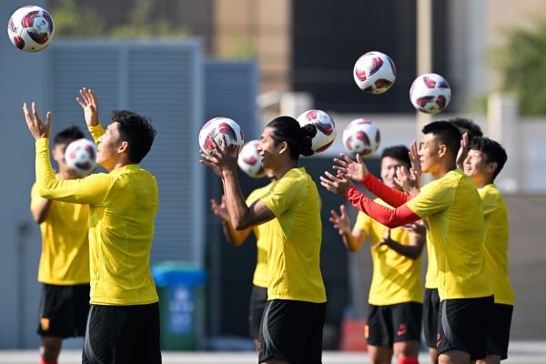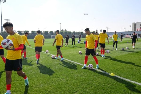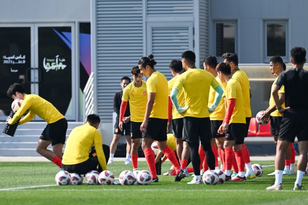 当地时间2024年1月11日,卡塔尔多哈,2023亚洲杯A组首轮前瞻,中国男足训练备战。