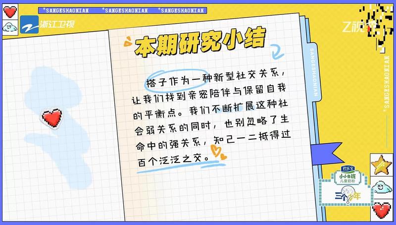 节目里,“少年研究员”们探讨“精神内耗”的话题,分享清理负面情绪的方法;直面“手机依赖”,寻找健康的生活方式;畅聊“社交搭子”,解锁新型交友途径;更对当下的“倍速生活”发出感慨,寻找调节生活节奏的方法。