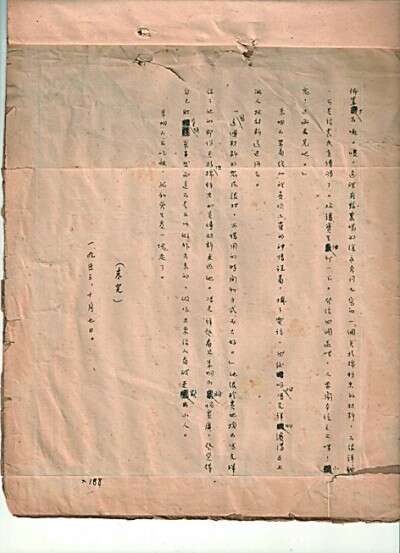 他随便翻开一页说:“我喜欢鲁迅书稿中娟秀的豆豆字。”我一看,他的稿中也是页页工整,一字一格的豆豆字。以后,这部书稿我从没有销毁的念头,舍不得。甚至翻动的时候也怕损坏它,我仿佛看见他坐在桌边认真地在写,也像在听他给我讲他动情的经历。我是想,如果我离世前它一直这样寂静地躺着,那我走时就带它走了,没想到,经历了几十年时政的变化,它虽然在艺术手法和反映及概括社会生活上并不突出,但能出版面世,给研究者提供片段的资料,实在是幸莫大耶!我真不知道怎样表达我对出版者和编辑的感激之情。我想,此稿面世,离去的父亲也一定会冥笑于天的。