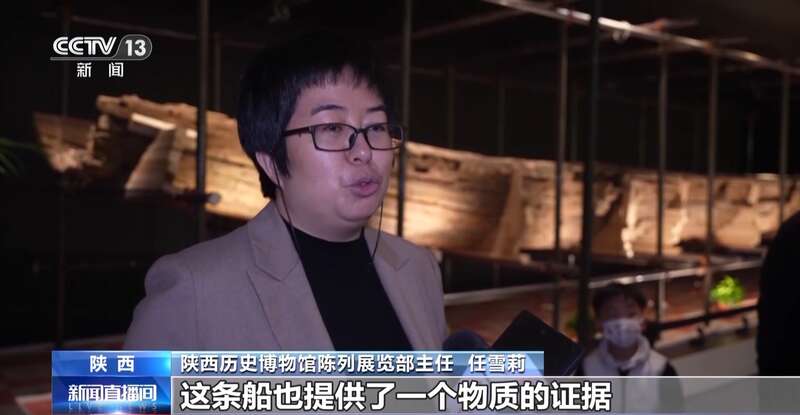 陕西历史博物馆陈列展览部主任 任雪莉:经过检测,它有榆木、圆柏,还有槐树,共同做成了这样一条大船。