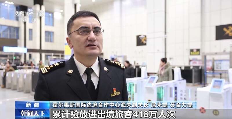 霍尔果斯国际边境合作中心海关副关长 居来提·苏合力提:2023年1—12月,累计验放进出境旅客418万人次,同比增长4.27倍。