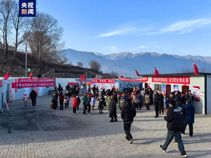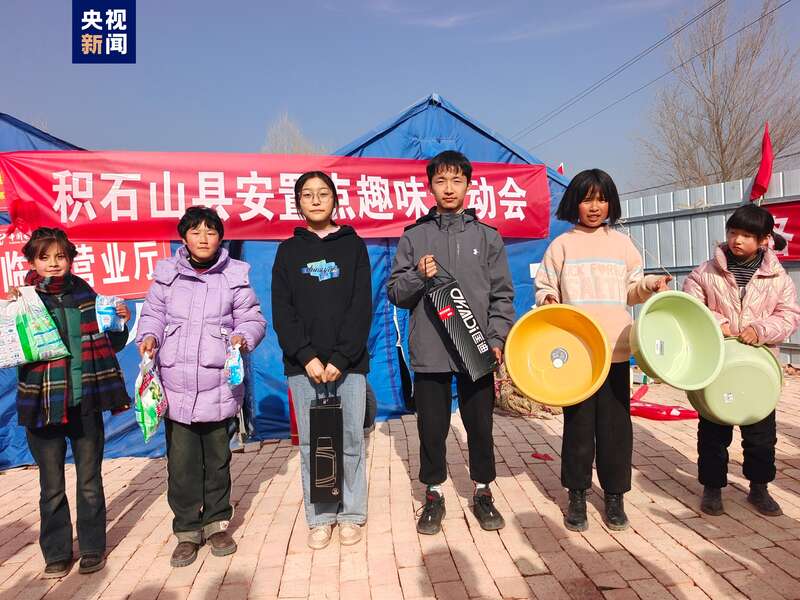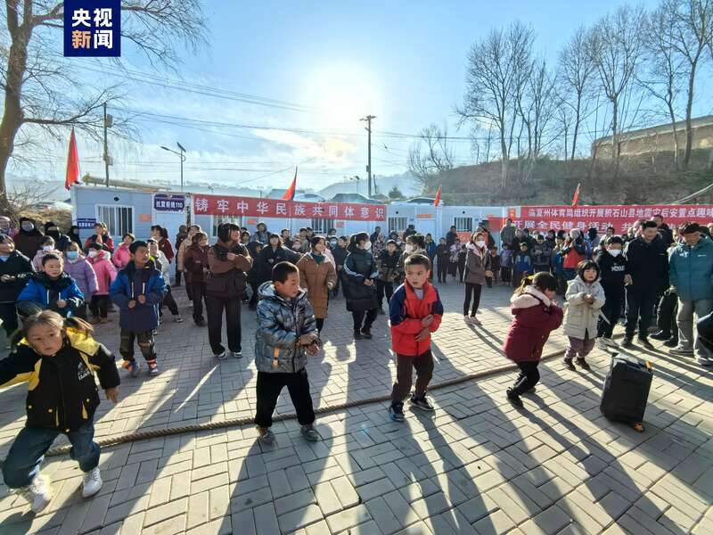 1月16日,甘肃省积石山县刘集乡阳洼村安置点居民一大早就来到了广场上,要参加一场趣味运动会。