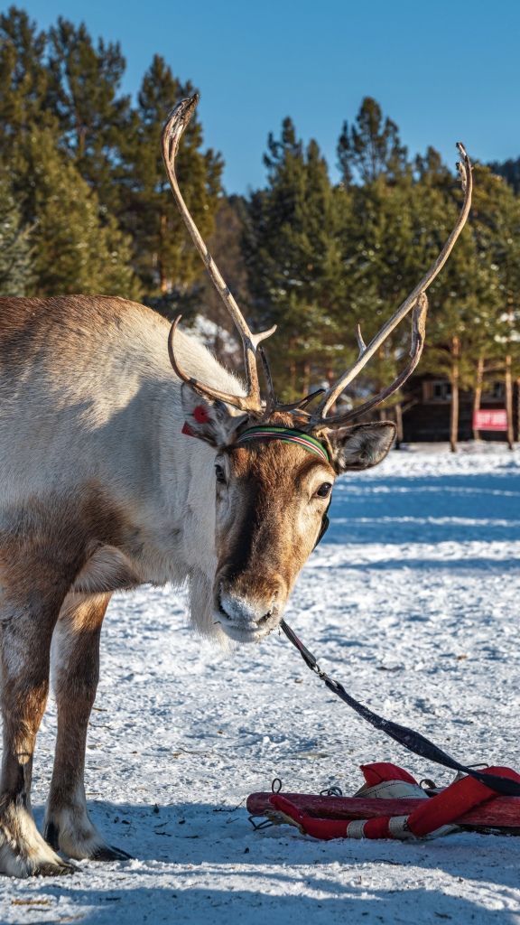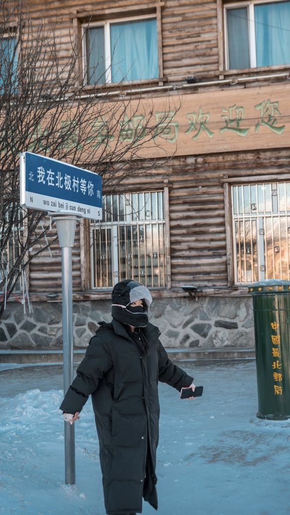 2024年1月15日,黑龙江大兴安岭,游客在漠河北极村感受冬日风情。