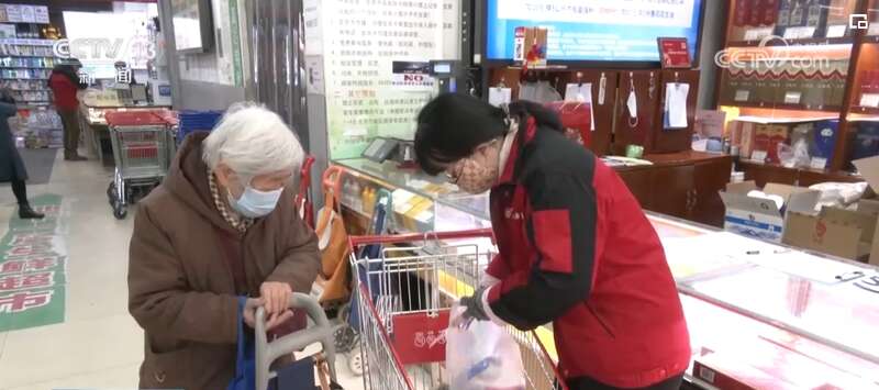 早上8时,社区附近的东单菜市场开门营业。87岁的曹奶奶今天用积分换了很多东西,菜市场的工作人员提出免费帮她送到家里。