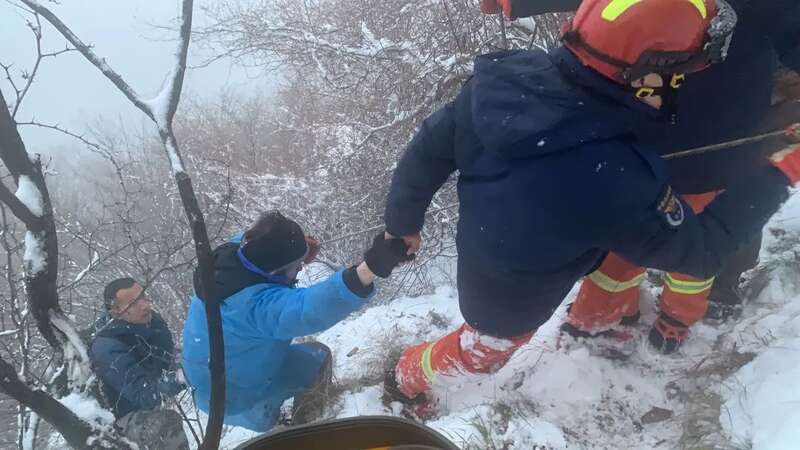 据悉,该男子于上午11点进入华山,因想探险,便选择了华山未开发区域攀登,谁知12点左右天开始下雪,雪天路滑,男子不慎摔倒在半山腰处,尝试自行脱困未成功,便拨打报警电话求助。