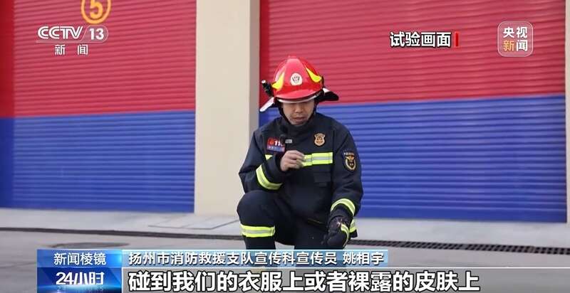 扬州市消防救援支队宣传科宣传员姚相宇:现在温度是649℃,可以说这样的温度非常高,如果说这样高的温度碰到我们的衣服上或者裸露的皮肤上,可以说是非常危险。