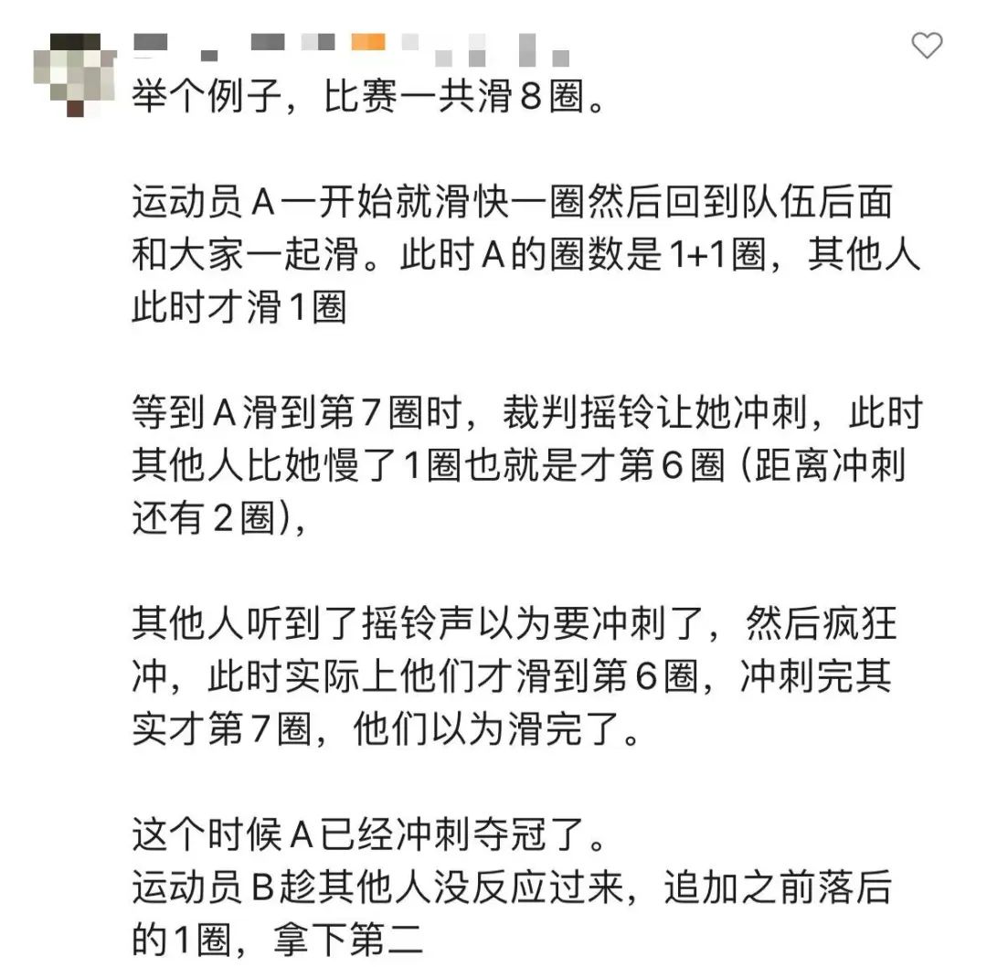 “兔子战术”也叫“套圈战术”。值得一提的是,1500米是对选手体能和耐力的双重考验,若非有特别的准备,队员一般不会采取这种风险极大的滑法。