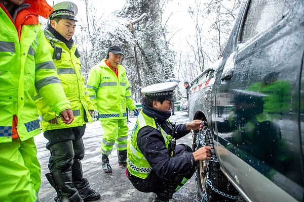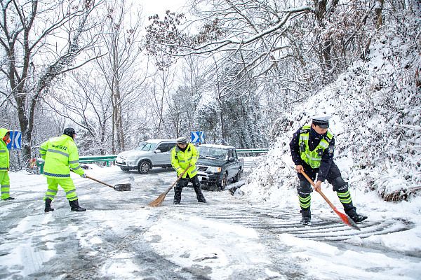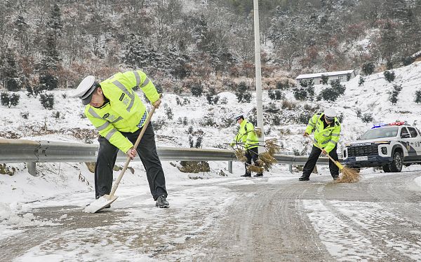 2024年1月22日,各地公安交警以雪为“警”,铲除清理路面积雪、引导提醒过往车辆、救助被困车辆,全力维护雪天道路交通安全,守护群众平安出行。