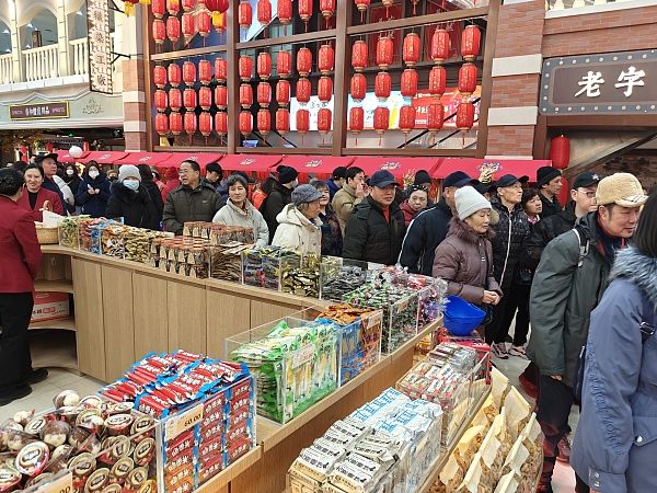 2024年1月21日,天津,市民在现场挑选老字号产品。
