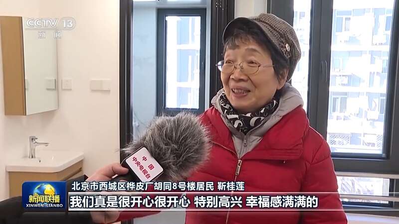 北京市西城区桦皮厂胡同8号楼居民 靳桂莲:全是明厨明卫、阳光也好、通风也好,我们真是很开心很开心,特别高兴、幸福感满满的。