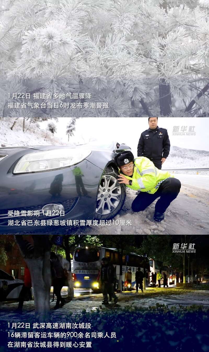 1月22日06时,中央气象台连续发布大风蓝色预警、暴雪黄色预警、寒潮蓝色预警。1月22日至23日,新一轮寒潮天气过程影响我国中东部地区,多地持续降温。全国各地各部门第一时间响应,多措并举应对本轮寒潮来袭,全力保障各项民生工作。